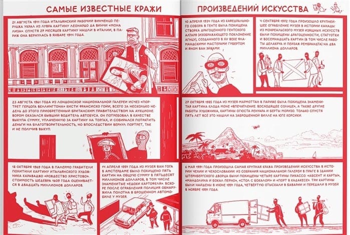 Жили-были дедушка с бабушкой. Бабушка интересовалась искусством, читала книги о художниках, а дедушка в молодости сам занимался живописью и не понаслышке знал, как смешивать краски. И были у них внучка Эма, старшеклассница, и внук Микулаш, девятилетний сорванец, больше всего на свете любивший гонять мяч и наблюдать за футбольными матчами. Однажды Эме задали на выходные сочинение о картинах, и тогда бабушка с дедушкой решили сводить ее и Микулаша в музей современного искусства, да не в простой музей, а в волшебный, где собраны шедевры со всего света. По удивительному стечению обстоятельств в то же самое время бывший директор этого музея, как никто другой знавший цену сокровищам, что в нём хранятся, задумал похитить одно из них, и пока дедушка с бабушкой рассказывали Эме и Микулашу о картинах, в музей прокрались грабители. Так юные посетители, сами о том не подозревая, стали свидетелями и даже участниками детективной истории. О том, как она развивалась, а заодно и о том, как развивалось искусство последних двух столетий, расскажет эта книга, получившая в 2015 году престижную премию Magna Litera за лучшее издание для детей.