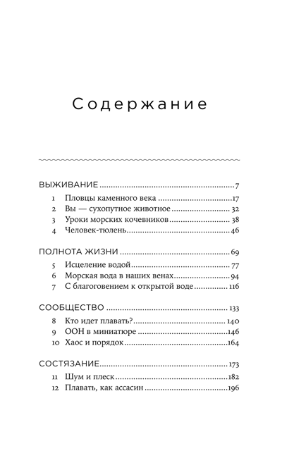Эта захватывающая книга о благотворном влиянии воды на человеческое тело и разум основана на историях реальных людей. Среди них и олимпийские чемпионы, и современные последователи самурайского стиля плавания нихон эйхо, и исландский рыбак, чудом выживший после того, как провел более шести часов в ледяной воде. Постоянный автор The New York Times Бонни Цуй сама с детства занимается плаванием, и ее личный опыт — от заплывов в холодных водах залива Сан-Франциско до преодоления вплавь озера Джордж в день собственной помолвки — стал темой не менее захватывающих страниц.