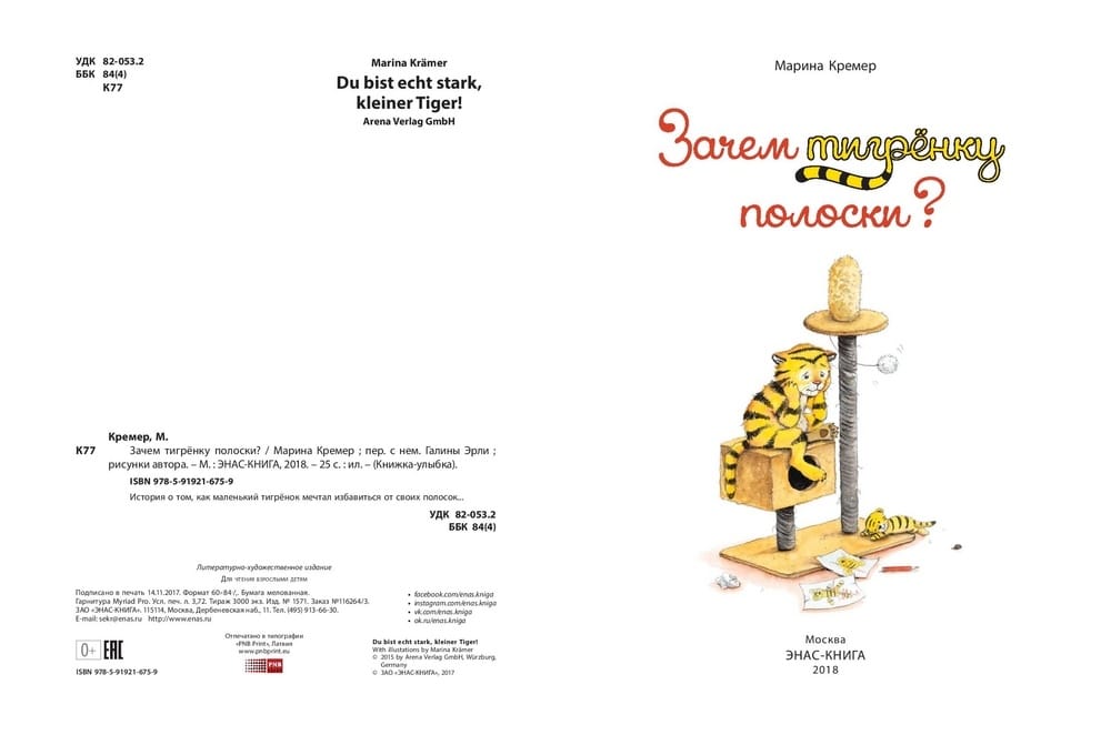 Смешную историю о том, как тигрёнок хотел избавиться от своих полосок, сочинила и нарисовала Марина Кремер, известный немецкий писатель и художник-иллюстратор.