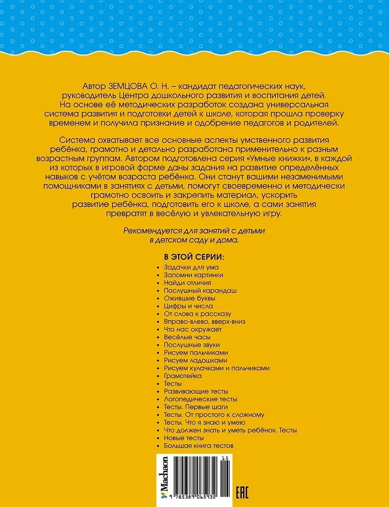 Автор книг этой серии – Земцова Ольга Николаевна, кандидат педагогических наук, руководитель Центра дошкольного развития и воспитания детей. Цель разработанной автором методики – комплексное развитие ребёнка с учётом требований современного дошкольного образования. Методика О. Н. Земцовой формирует у детей не только систему знаний, но и позитивное отношение к учёбе, уверенность в своих силах и нацеленность на результат. В этой серии вы найдёте книги с тестовыми заданиями трёх уровней сложности для разных возрастных групп. Занимаясь по книгам, вы сможете проверить знания вашего ребёнка и узнаете, какие навыки требуют дополнительного развития. Рекомендуется для занятий с детьми в детском саду и дома.