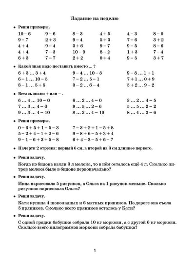 Задания по математике для повторения и закрепления учебного материала. 1 класс