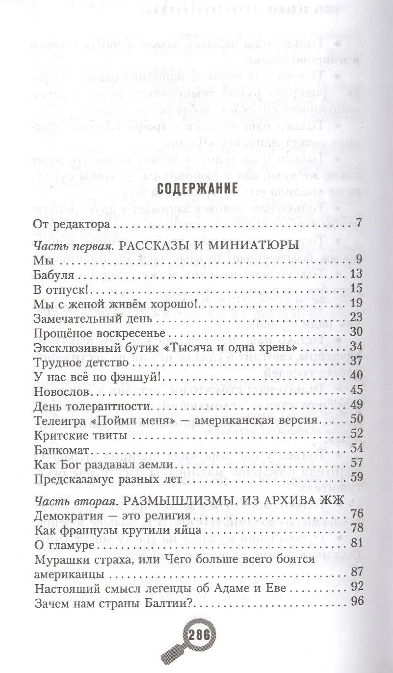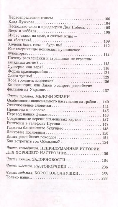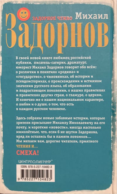В своей новой книге любимец российской публики, писатель­-сатирик, драматург, юморист — Михаил Задорнов говорит обо всём: о различии в понятиях «родина» и «государство», о чиновниках, об истории и псевдоисториках, о происхождении и истинном значении русского языка, об образовании и подрастающем поколении, о наших правителях и правителях других стран, о гламуре, о церкви. И конечно же о национальном характере, о любви и о душе, о том, что есть в каждом русском человеке. Здесь собраны новые забавные истории, которые зрители присылают Михаилу Николаевичу на его почту, и короткие «новос­ти», иногда настолько мимолётные, что, если б не шутки Задорнова, вряд ли остались бы в памяти потомков… Мы желаем вам, дорогие читатели, приятного чтения и… смеха!