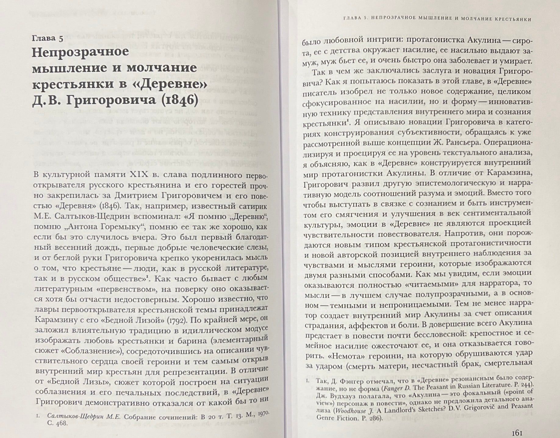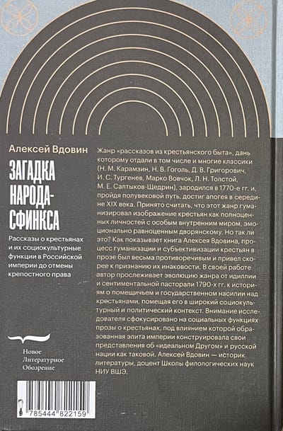Жанр «рассказов из крестьянского быта», дань которому отдали в том числе и многие классики (Н. М. Карамзин, Н. В. Гоголь, Д. В. Григорович, И. С. Тургенев, Марко Вовчок, Л. Н. Толстой, М. Е. Салтыков-Щедрин), зародился в 1770‑е годы и, пройдя полувековой путь, достиг апогея в середине XIX века. Принято считать, что этот жанр гуманизировал изображение крестьян как полноценных личностей с особым внутренним миром, эмоционально равноценным дворянскому. Но так ли это? Как показывает книга Алексея Вдовина, процесс гуманизации и субъективизации крестьян в прозе был весьма противоречивым и привел скорее к признанию их инаковости. В своей работе автор прослеживает эволюцию жанра от идиллии и сентиментальной пасторали 1790‑х годов к историям о помещичьем и государственном насилии над крестьянами, помещая его в широкий социокультурный и политический контекст. Внимание исследователя сфокусировано на социальных функциях прозы о крестьянах, под влиянием которой образованная элита империи конструировала свои представления об «идеальном Другом» и русской нации как таковой. Алексей Вдовин — историк литературы, доцент Школы филологических наук НИУ ВШЭ.