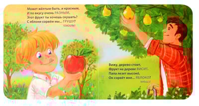 Книжка-картонка «Загадки - обманки. Фрукты и ягоды» Евгения Сосновского познакомит малыша с фруктами и ягодами с помощью загадок-обманок.