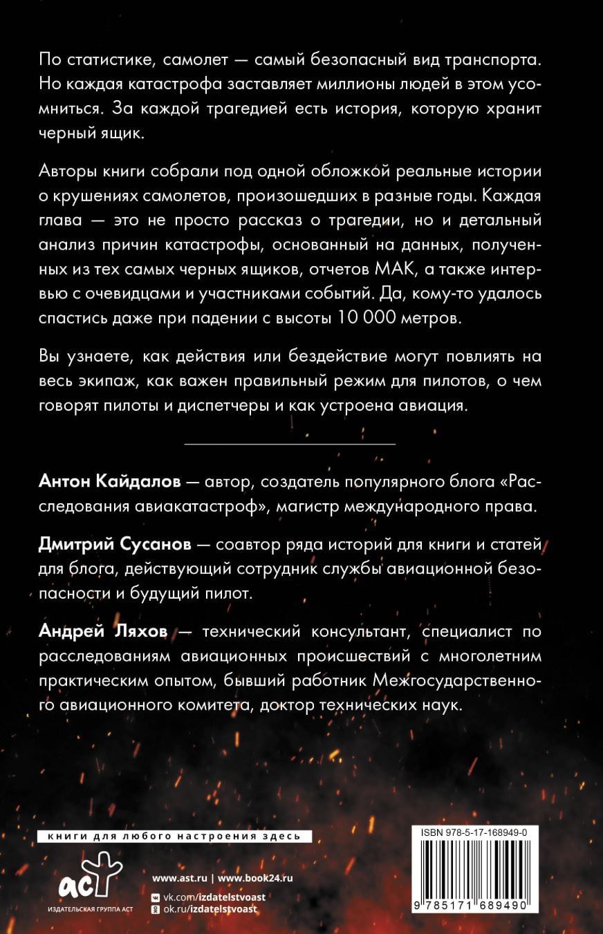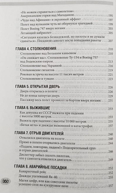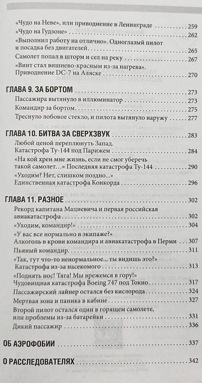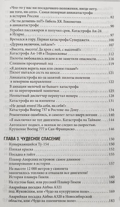 Авторы книги собрали под одной обложкой реальные истории о крушениях самолетов, произошедших в разные годы. Каждая глава — это не просто рассказ о трагедии, но и детальный анализ причин катастрофы, основанный на данных, полученных из тех самых черных ящиков, отчетов МАК, а также интервью с очевидцами и участниками событий. Да, кому-то удалось спастись даже при падении с высоты 10 000 метров. Особое внимание уделяется влиянию каждой аварии на совершенствование летных протоколов и повышение безопасности полетов.