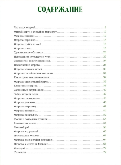 На нашей планете около 500 тысяч островов — огромных и крошечных, необитаемых и застроенных небоскребами, покрытых ледниками и лесами. И у каждого из них своя история открытия, уникальный животный и растительный мир. На страницах этой энциклопедии вы раскроете тайны самых удивительных островов планеты.