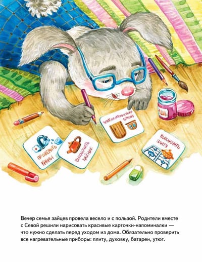 Зайчику Севе впервые предстоит остаться дома одному! Конечно, родители о многом его предупредили: «Не открывай дверь незнакомцам!», «Выключай кран с водой после того, как помоешь лапки», «Не трогай нагревательные приборы!» Но справится ли Сева? Какие правила безопасности нужно знать ещё? Что случилось с Севой, вы узнаете из сказки, поучительной и полезной. Это не просто великолепно иллюстрированные истории про непоседливого зайку и его друзей для семейного чтения, но и материал для беседы «Что такое хорошо и что такое плохо». В конце книги предлагаются вопросы, составленные детским педагогом-психологом для обсуждения с ребёнком. Книга рекомендована родителям, воспитателям, педагогам. Полезные сказки воспитывают ребёнка без крика и наказаний! Для чтения взрослыми детям.