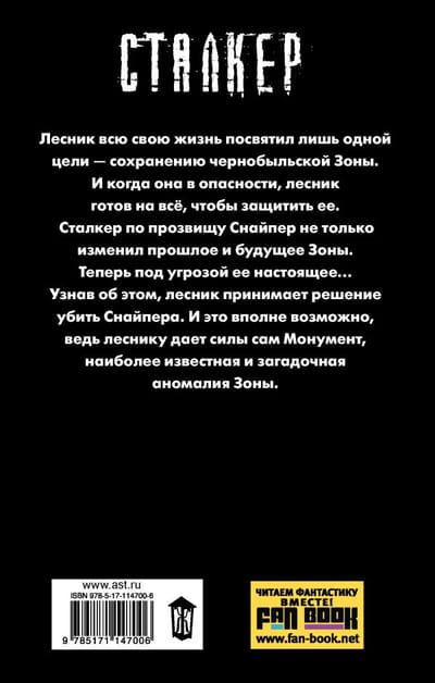 И когда она в опасности, лесник готов на всё, чтобы защитить ее. Сталкер по прозвищу Снайпер не только изменил прошлое и будущее Зоны. Теперь под угрозой ее настоящее... Узнав об этом, лесник принимает решение убить Снайпера. И это вполне возможно, ведь леснику дает силы сам Монумент, наиболее известная и загадочная аномалия Зоны.