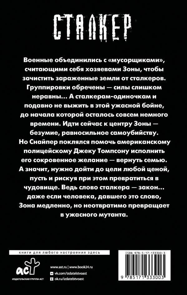 Но Снайпер поклялся помочь американскому полицейскому Джеку Томпсону исполнить его сокровенное желание — вернуть семью. А значит нужно дойти до цели любой ценой, даже рискуя при этом превратиться в чудовище. Ведь слово сталкера — закон... даже если человека, давшего это слово, Зона медленно, но неотвратимо превращает в ужасного мутанта.