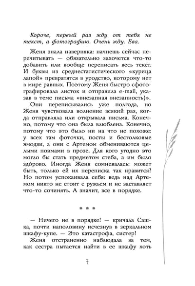 Женьке не повезло родиться в семье второй. Мама вечно сравнивает ее со старшей сестрой Сашкой, и сравнение всегда не в Женькину пользу. Кроме того, девочка носит одежду размера «М», а это – если тебе 15 лет – практически трагедия. Но даже с такими «чудовищными» вводными, Женьке удается оставаться оптимисткой и с иронией относиться к себе и окружающим. Да и не всё так плохо, если честно. Вон Artem09 с ней хочет встретиться, но… Но как же ей теперь похудеть за три дня?!