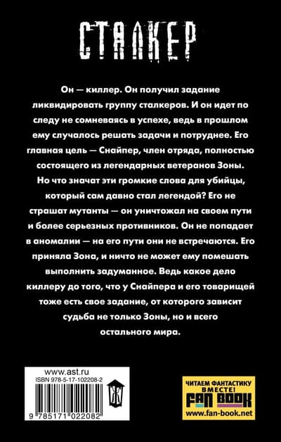 Его не страшат мутанты — он уничтожал на своем пути и более серьезных противников. Он не попадает в аномалии — на его пути они не встречаются. Его приняла Зона, и ничто не может ему помешать выполнить задуманное. Ведь какое дело киллеру до того, что у Снайпера и его товарищей тоже есть свое задание, от которого зависит судьба не только Зоны, но и всего остального мира.