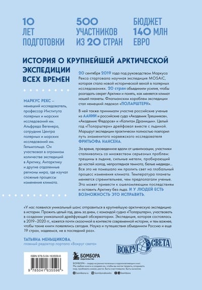 20 сентября 2019 года под руководством научного исследователя Маркуса Рекса стартовала экспедиция MOSAiC, которая стала крупнейшей в истории. В ней приняли участие исследователи из 20 стран. Их целью было разобраться в том, как меняется климат нашей планеты, ведь по льдам Арктики это заметно лучше всего. Флагманским кораблем экспедиции стал немецкий ледокол «Поларштерн». В исследовании также принимали участие российские ученые из Арктического и антарктического научно-исследовательского института (ААНИИ) и российские суда «Академик Трешников», «Академик Федоров» и «Капитан Драницын».