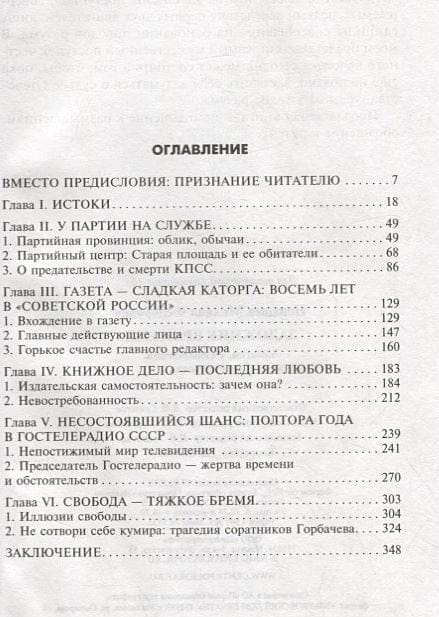 Автор книги долгое время возглавлял газету «Советская Россия», Государственный комитет СССР по печати, Гостелерадио СССР. Заметки и размышления автора в связи с общением, встречами с М.С. Горбачевым, Б.Н. Ельциным, Н.И. Рыжковым, Е.К. Лигачевым, А.Н. Яковлевым и многими другими государственными и общественными деятелями СССР и новой России помогают лучше понять, что происходило с Россией в конце XX века. Для широкого круга читателей.