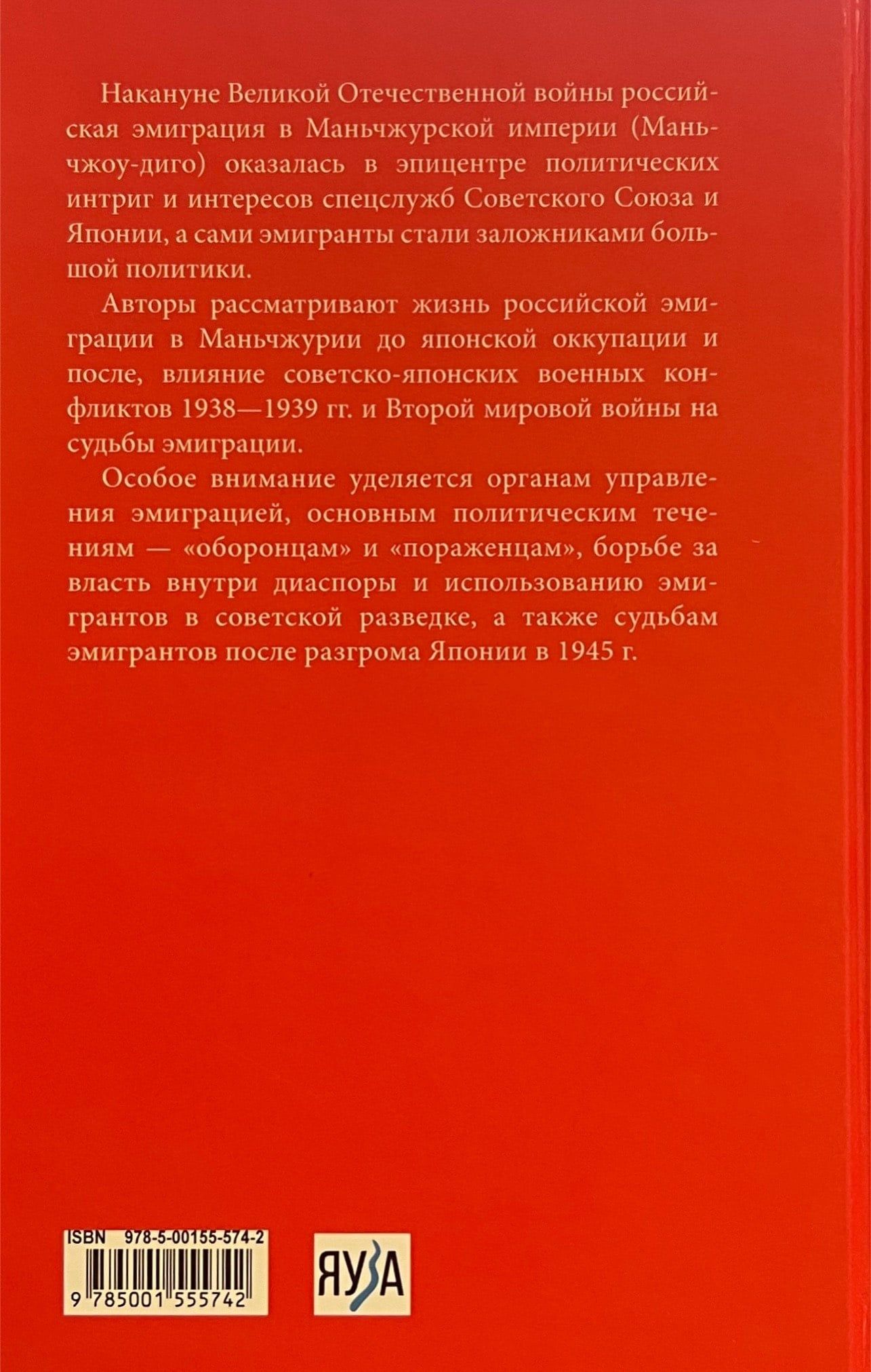 Накануне Великой Отечественной войны российская эмиграция в Маньчжурской империи (Маньчжоу-диго) оказалась в эпицентре политических интриг и интересов спецслужб Советского Союза и Японии, а сами эмигранты стали заложниками большой политики.