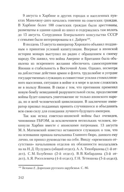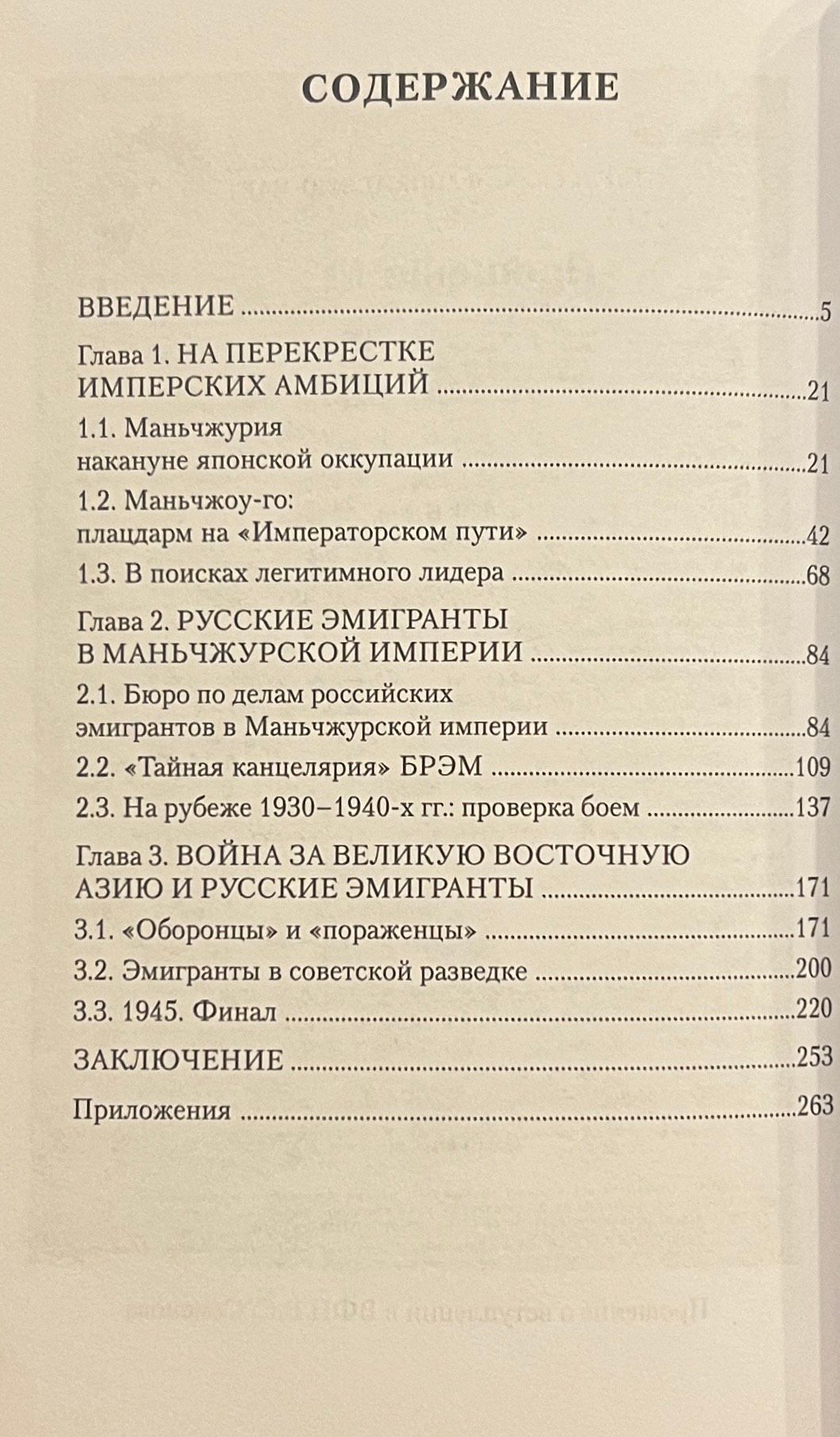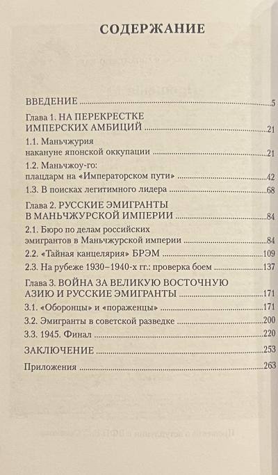 Авторы рассматривают жизнь российской эмиграции в Маньчжурии до японской оккупации и после, влияние советско-японских военных конфликтов 1938-1939 гг. и Второй мировой войны на судьбы эмиграции.