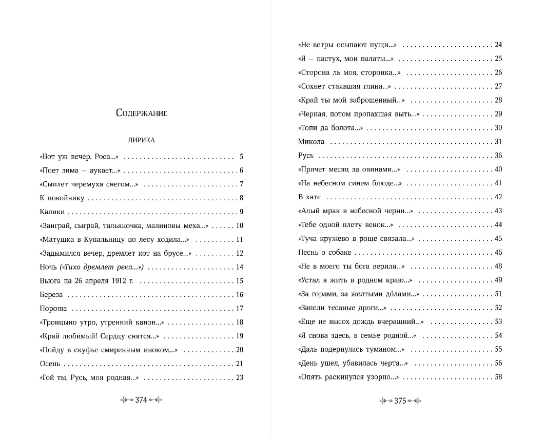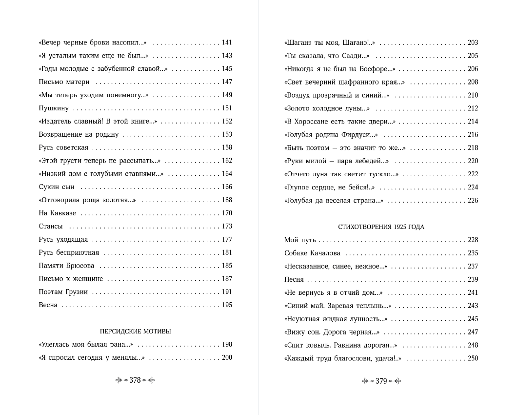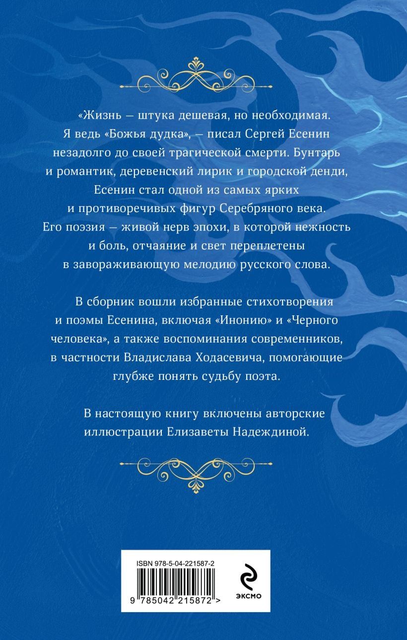 В сборник вошли избранные стихотворения и поэмы Есенина, включая «Инонию» и «Чёрного человека», а также воспоминания современников, в частности, Владислава Ходасевича, помогающие глубже понять судьбу поэта.