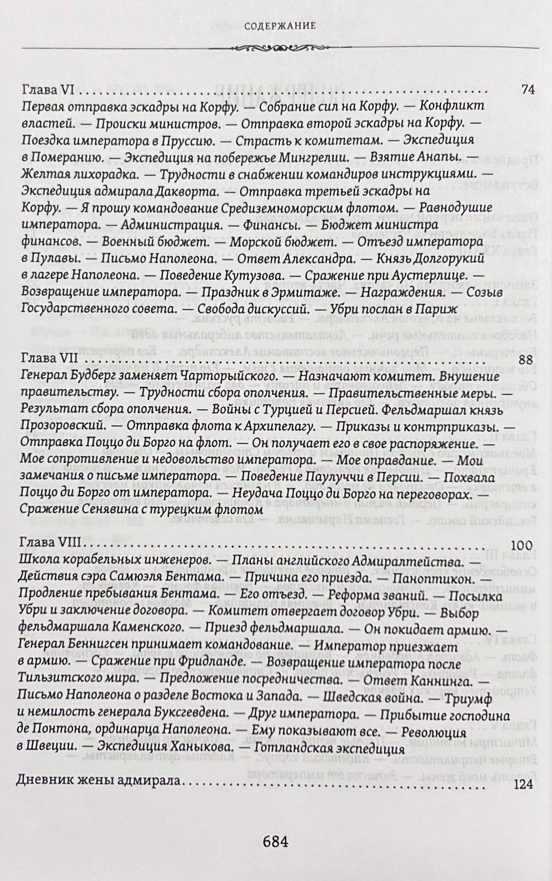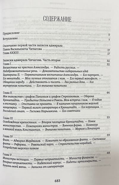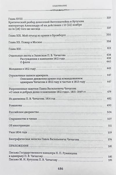 Впервые на русском языке выходят в свет не публиковавшиеся ранее Записки адмирала П. В. Чичагова. Они охватывают «дней Александровых прекрасное начало», когда адмирал стоял во главе морского ведомства вплоть до своего отъезда во Францию в 1808 году, и события 1812 года, которых он сам был свидетелем и активным участником. Раскрываются новые факты о том времени, дающие представление о взаимоотношениях высокопоставленных лиц, об отношении автора к ним и к различным событиям российской истории. Адмирал оказался единственным лицом из высшего звена военачальников России, кто оставил свои воспоминания о том времени и дал собственную трактовку ситуации гибели наполеоновского нашествия. Дополнением служат дневниковые записи П. В. Чичагова, описывающие его отъезд из С.-Петербурга в Великобританию, а также письма самого адмирала и к нему от разных адресантов — Н. П. Румянцева, М. И. Кутузова, А. И. Чернышева, Р. Вильсона, С. Р. Воронцова.