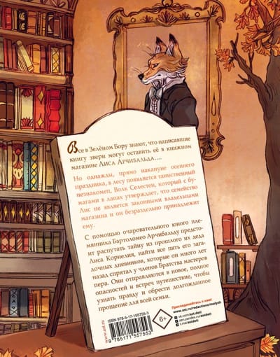 Все в Зелёном Бору знают, что написавшие книгу звери могут оставить её в книжном магазине Лиса Арчибальда…. Но однажды, прямо накануне осеннего праздника, в лесу появляется таинственный незнакомец, Волк Селестен, который с бумагами в лапах утверждает, что семейство Лис не является законными владельцами магазина и он безраздельно принадлежит ему.