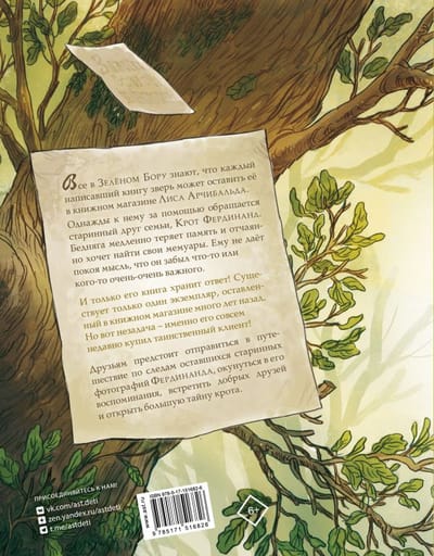 Все в Зелёном Бору знают, что каждый написавший книгу зверь может оставить её в книжном магазине Лиса Арчибальда. Однажды к нему за помощью обращается старинный друг семьи, Крот Фердинанд. Бедняга медленно теряет память и отчаянно хочет найти свои мемуары. Ему не даёт покоя мысль, что он забыл что то или кого то очень очень важного. И только его книга хранит ответ! Существует только один экземпляр, оставленный в книжном магазине много лет назад. Но вот незадача — именно его совсем недавно купил таинственный клиент! Друзьям предстоит отправиться в путешествие по следам оставшихся старинных фотографий Фердинанда, окунуться в его воспоминания, встретить добрых друзей и открыть большую тайну крота.