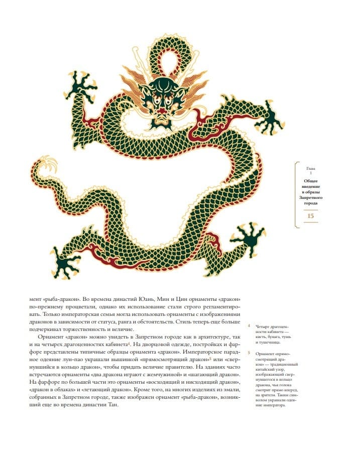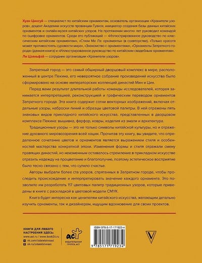 Перед вами результат длительной работы команды исследователей, которая занимается интерпретацией, реконструкцией и графическим переводом орнаментов Запретного города. Эта книга содержит сотни векторных изображений, включая отдельные узоры, наброски линий и образцы цветовой палитры. В ней отражены пять знаковых видов прикладного китайского искусства, представленных в дворцовом комплексе Пекина: вышивка, фарфор, ковры, изделия из эмали и архитектура.