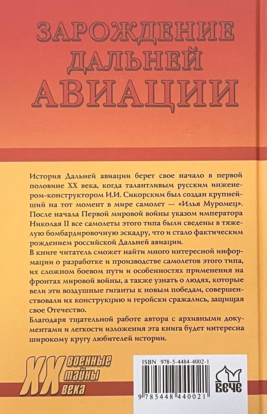 История Дальней авиации берет свое начало в первой половине XX века, когда талантливым русским инженером-конструктором И.И. Сикорским был создан крупнейший на тот момент в мире самолет — «Илья Муромец». После начала Первой мировой войны указом императора Николая II все самолеты этого типа были сведены в тяжелую бомбардировочную эскадру, что и стало фактическим рождением российской Дальней авиации. В книге читатель сможет найти много интересной информации о разработке и производстве самолетов этого типа, их сложном боевом пути и особенностях применения на фронтах мировой войны, а также узнать о людях, которые вели эти воздушные гиганты к новым победам, совершенствовали их конструкцию и геройски сражались, защищая свое Отечество. Благодаря тщательной работе автора с архивными документами и легкости изложения эта книга будет интересна широкому кругу любителей истории.