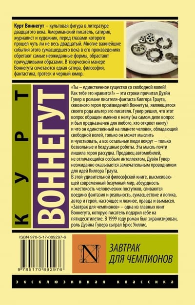 «Завтрак для чемпионов» — одна из главных книг Воннегута, которую писатель подарил себе на пятидесятилетие. В 1999 году роман был экранизирован, роль Дуэйна Гувера сыграл Брюс Уиллис.