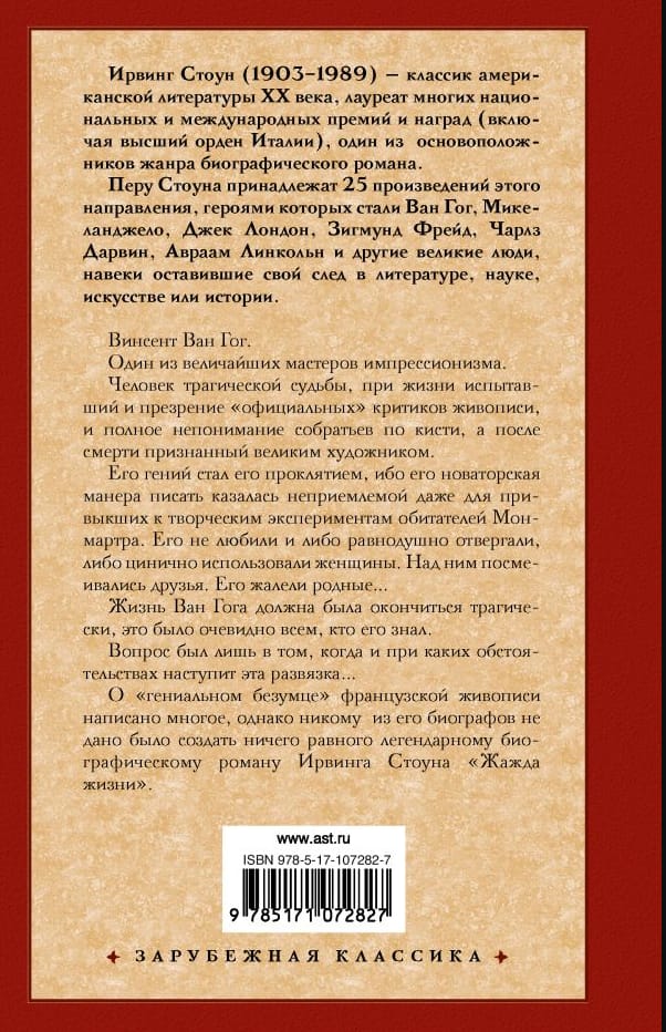 О "гениальном безумце" французской живописи написано многое, однако никому из его биографов не дано было создать ничего равного легендарному биографическому роману Ирвинга Стоуна "Жажда жизни".