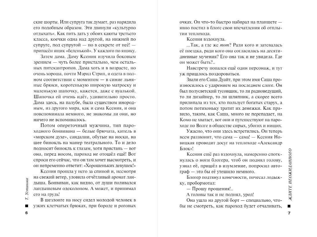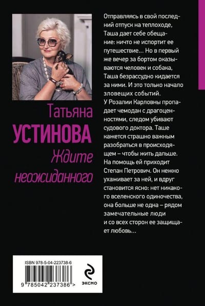 Никогда нельзя предположить, чем кончится путешествие... Таша отправляется в свой последний отпуск на теплоходе по Волге в твердой уверенности: она больше никогда не увидит синюю реку, белые облака, зеленые берега. Она дает себе обещание: никто не посмеет испортить ее путешествие… Однако почти сразу все идет наперекосяк. За кем следит светская красавица Ксения Новицкая? Что замышляет блогер Богдан? И кто такие закадычные друзья Степан Петрович и Владимир Иванович? В первый же вечер за бортом оказываются человек и собака, Таша храбро и безрассудно кидается за ними. И это только начало странных и зловещих событий. У старухи Розалии Карловны пропадает чемодан с драгоценностями, следом убивают судового доктора. Таше кажется страшно важным разобраться в происходящем – чтобы жить дальше. На помощь ей приходит Степан Петрович. Он нежно ухаживает за ней, и вдруг становится ясно: нет никакого вселенского одиночества, она больше не одна – рядом замечательные люди, и со всех сторон ее защищает любовь…