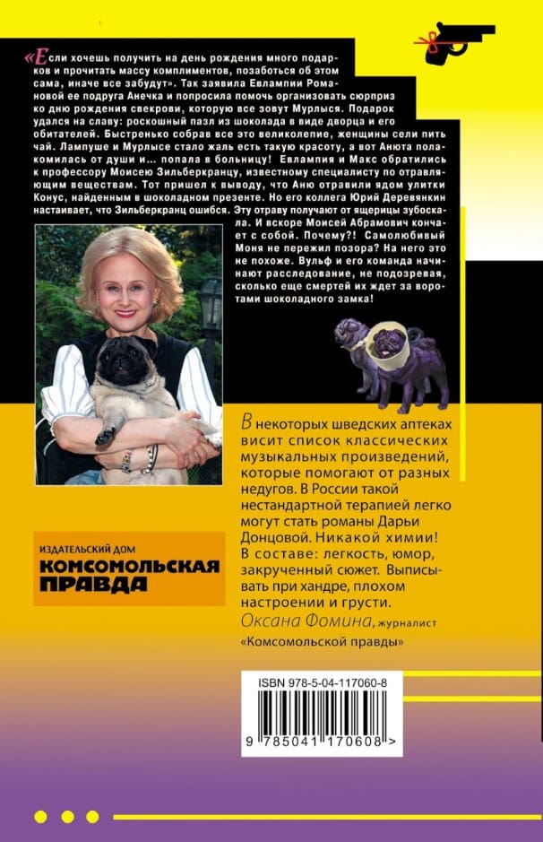 «Если хочешь получить на день рождения много подарков и прочитать массу комплиментов, позаботься об этом сама, иначе все забудут». Так заявила Евлампии Романовой ее подруга Анечка, и попросила помочь организовать сюрприз ко дню рождения свекрови, которую все зовут Мурлыся. Подарок удался на славу: роскошный пазл из шоколада в виде дворца и его обитателей. Быстренько собрав все это великолепие, женщины сели пить чай. Лампуше и Мурлысе стало жаль есть такую красоту, а вот Анюта полакомилась от души и… попала в больницу!  Евлампия и Макс обратились к профессору Моисею Зильберкранцу, известному специалисту по отравляющим веществам. Тот пришел к выводу, что Аню отравили ядом улитки Конус, найденном в шоколадном презенте. Но его коллега Юрий Деревянкин настаивает, что Зильберкранц ошибся. Эту отраву получают от ящерицы зубоскала. И вскоре Моисей Абрамович кончает с собой. Почему?!  Самолюбивый Моня не пережил позора? На него это не похоже. Вульф и его команда начинают расследование, не подозревая, сколько еще смертей их ждет за воротами шоколадного замка!