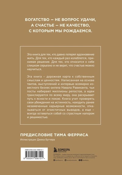 В сумасшедшей гонке за богатством и успехом давно нет места главному — жизни. Жизни, наполненной счастьем, гармонией и изобилием. В этой книге нет историй головокружительного успеха или внезапно улыбнувшейся удачи. Здесь ответы только на самые волнующие вопросы: как честность и принципы приведут к богатству, почему то, как все работают, уже не работает и, главное — сколько нулей нужно для счастья? Равикант виртуозно объясняет простыми словами фундаментальные основы бизнеса, философии и физики, следуя которым можно проснуться богатым. И это не просто слова. Все сказанное Навал испробовал на себе. И это сработало. Так почему бы не попробовать и вам?