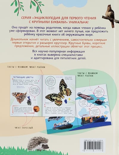 Рассказ о жизни животных перенесет ребенка туда, где жарко и холодно, где лежат пески и снега, растут деревья-исполины и кустарнички-карлики. Он узнает, почему в степи нужно быстро бегать, в пустыне рыть норы, а в лесу укладываться на зиму спать.Энциклопедия предназначена для совместного чтения родителей и детей. Тексты, набранные крупно и маркированные оранжевым флажком, читает ребенок, а тексты на прямоугольных и круглых плашках взрослый.