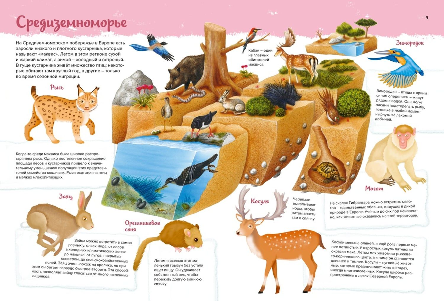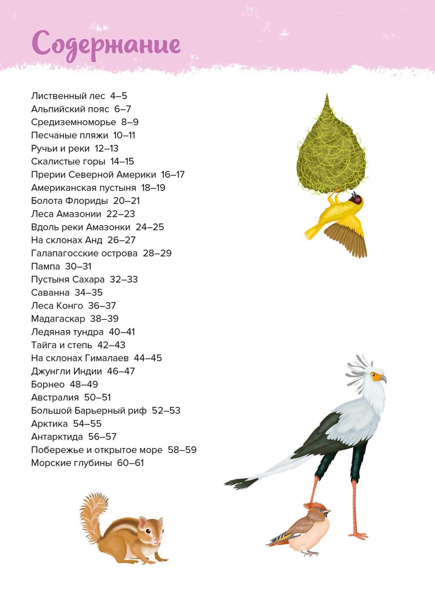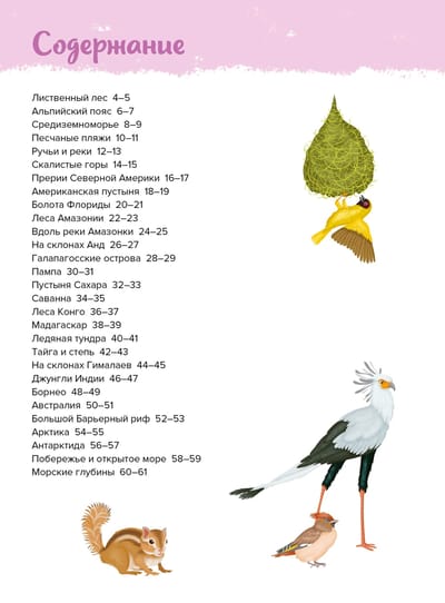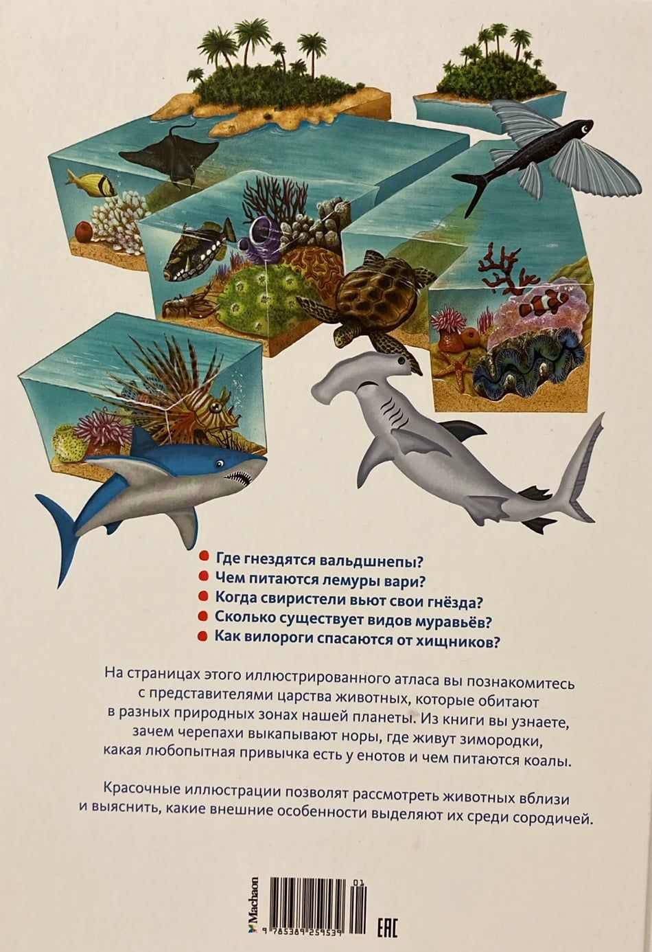 Где гнездятся вальдшнепы? Чем питаются лемуры вари? Когда свиристели вьют свои гнёзда? Сколько существует видов муравьёв? Как вилороги спасаются от хищников? На страницах этого иллюстрированного атласа вы познакомитесь с представителями царства животных, которые обитают в разных природных зонах нашей планеты. Из книги вы узнаете, зачем черепахи выкапывают норы, где живут зимородки, какая любопытная привычка есть у енотов и чем питаются коалы. Красочные иллюстрации позволят рассмотреть животных вблизи и выяснить, какие внешние особенности выделяют их среди сородичей.