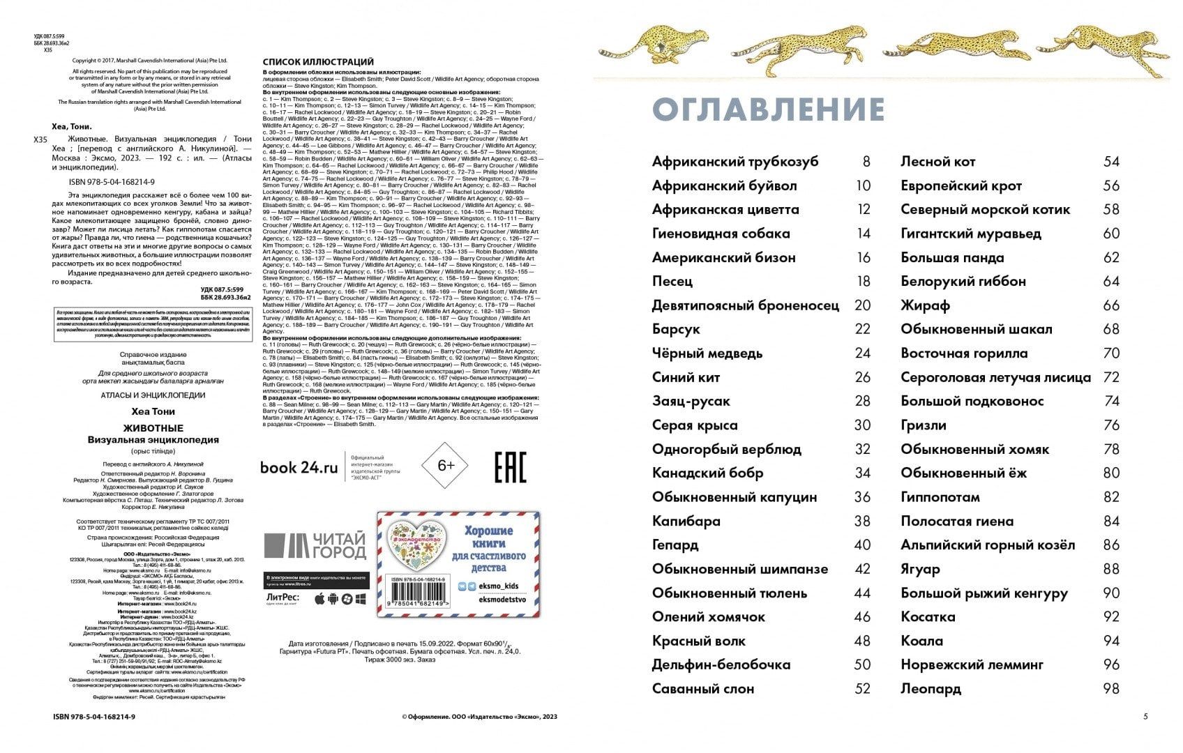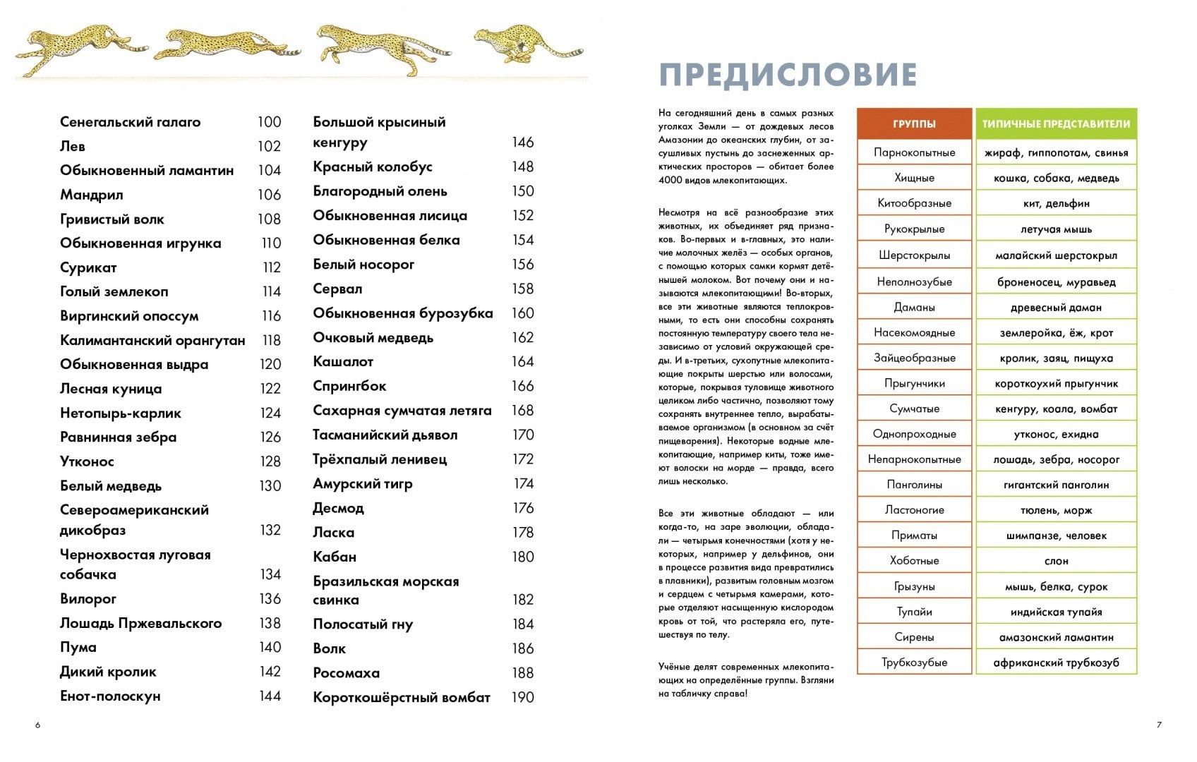 Эта энциклопедия расскажет о более чем 100 видах млекопитающих со всех уголков Земли — от известных до тех, о которых ты, возможно, даже никогда не слышал! Скорее открывай её и узнавай абсолютно всё о строении, окрасе и прочих особенностях льва, гепарда, синего кита, трубкозуба, галаго, капибары, утконоса и многих других обитателей дождевых лесов Амазонии и глубин Мирового океана, засушливых пустынь Африки и заснеженных арктических просторов.