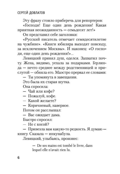 Сергей Довлатов - один из самых популярных и читаемых русских писателей конца ХХ - начала XXI века. Его повести, рассказы, записные книжки переведены на множество языков, экранизированы, изучаются в школе и вузах. Удивительно смешная и одновременно пронзительно-печальная проза Довлатова давно стала классикой и роднит писателя с такими мастерами трагикомической прозы, как А. Чехов, Тэффи, А. Аверченко, М. Зощенко.