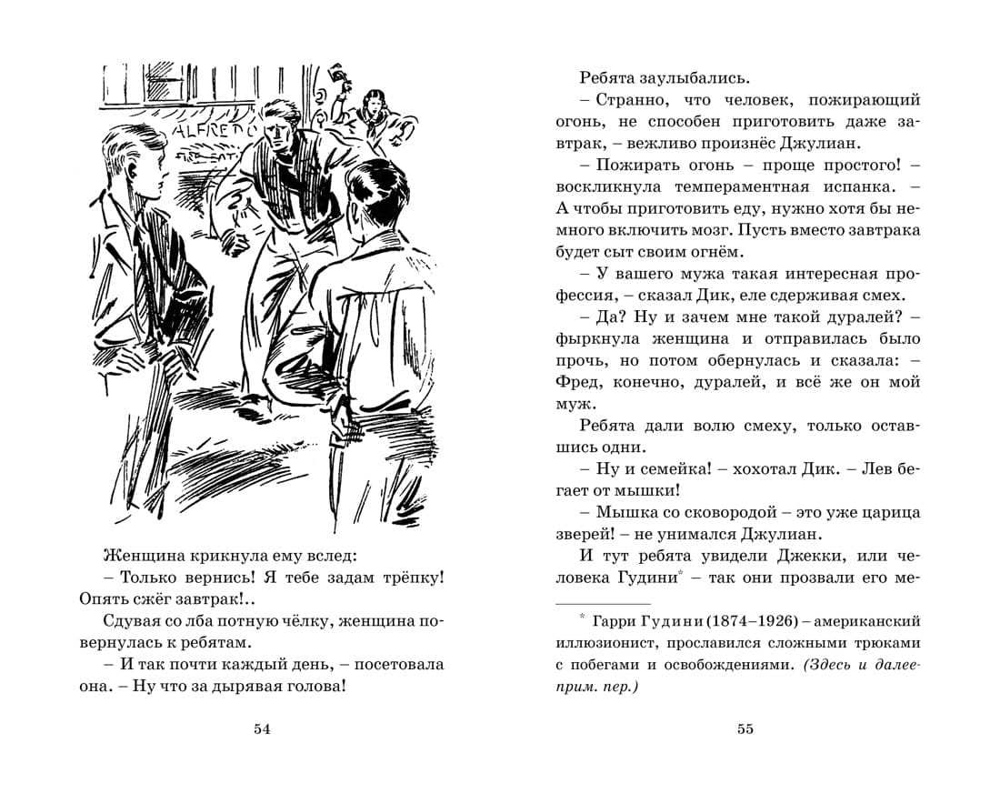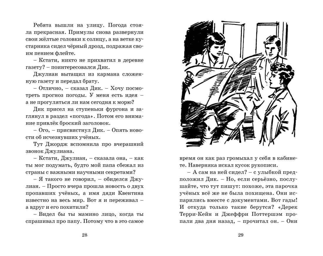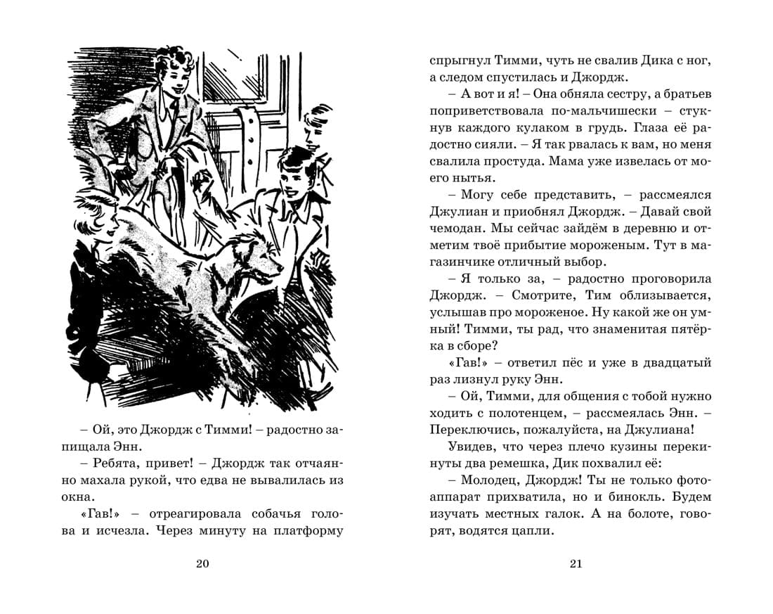 Знаменитая пятёрка снова вместе! На этот раз дети разбивают лагерь в фургончиках близ деревни Фэйнайтс-Кастл. Рядом на вершине холма возвышается полуразрушенный старинный замок. И вот однажды они замечают в окне башни чьё-то преисполненное отчаяния лицо. Интересно, кто там прячется и как он туда попал? И послужит ли это сигналом к началу нового приключения?..
