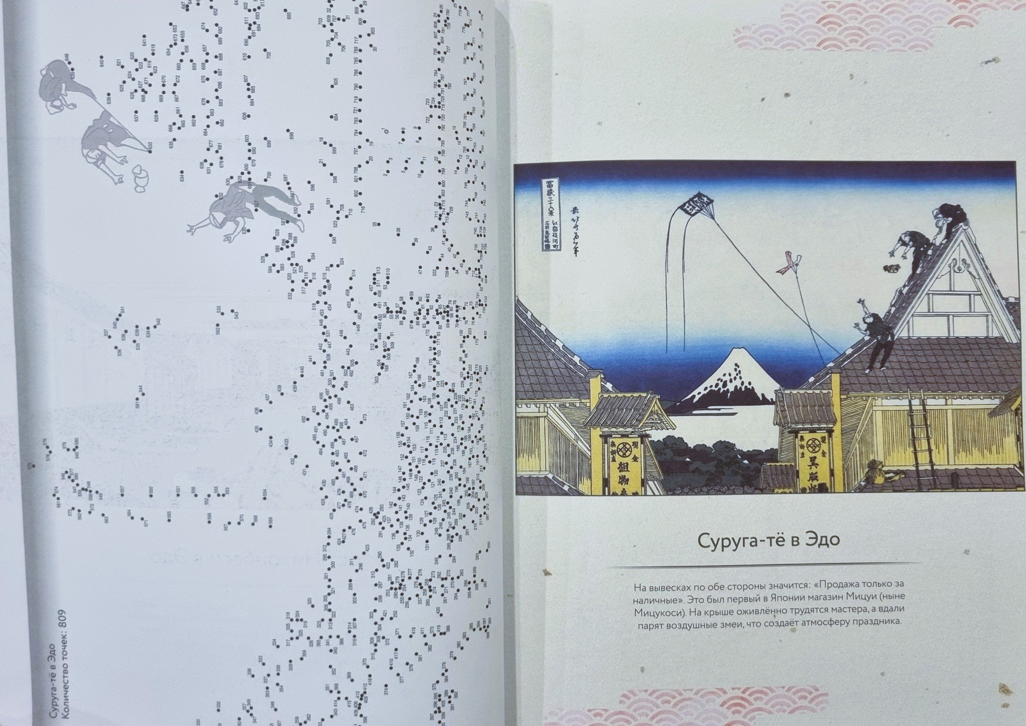 Знаменитые японские гравюры. От точки к точке. Раскраска по мотивам величайших работ Кацусики Хокусая