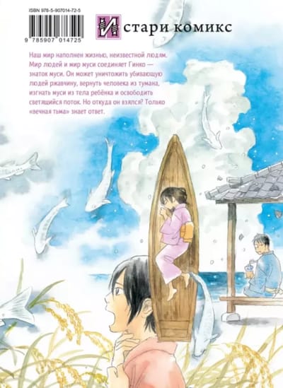 Наш мир наполнен жизнью, неизвестной людям. Мир людей и мир муси соединяет Гинко - знаток муси. Он может уничтожить убивающую людей ржавчину, вернуть человека из тумана, изгнать муси из тела ребёнка и освободить светящийся поток. Но откуда он взялся? Только вечная тьма знает ответ.