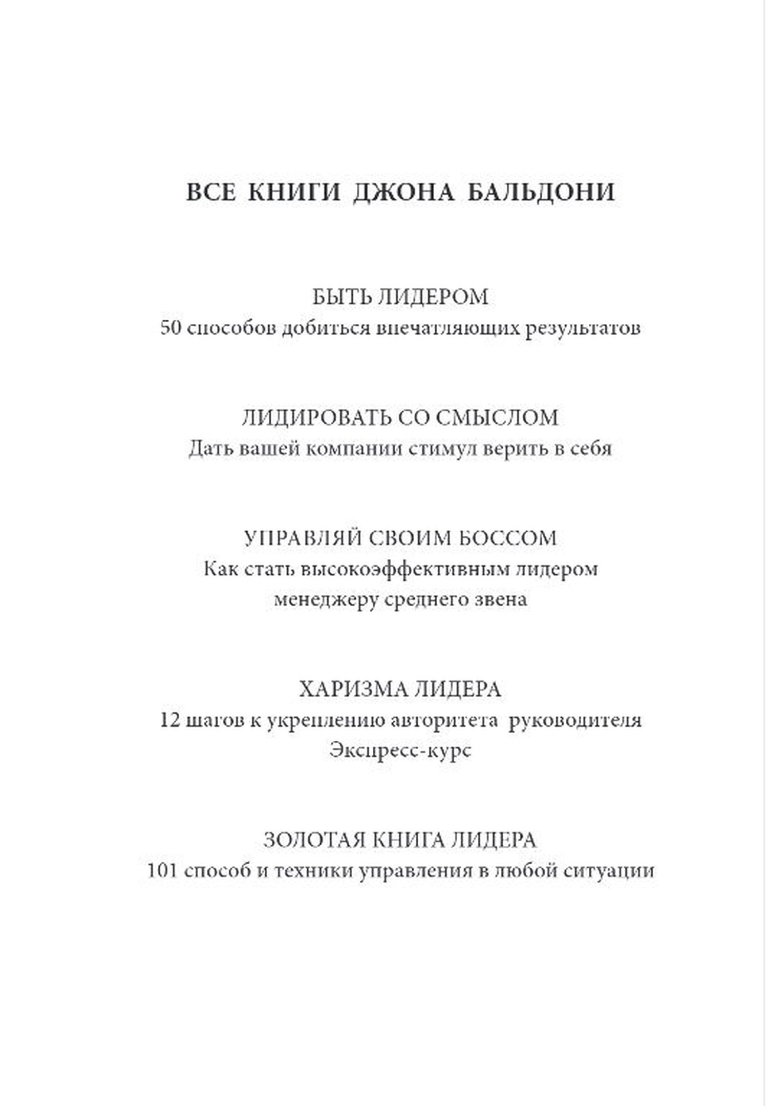 Эта книга — незаменимый помощник для руководителей: как выступать перед враждебно настроенной аудиторией; как быть лидером, когда все плохо; как улучшать командный результат; как изящно продавливать свои решения; как заставить людей поверить в себя; как справиться с кризисом; как создать безупречную репутацию — всего 101 урок, содержащий способы и техники управления в любой ситуации.