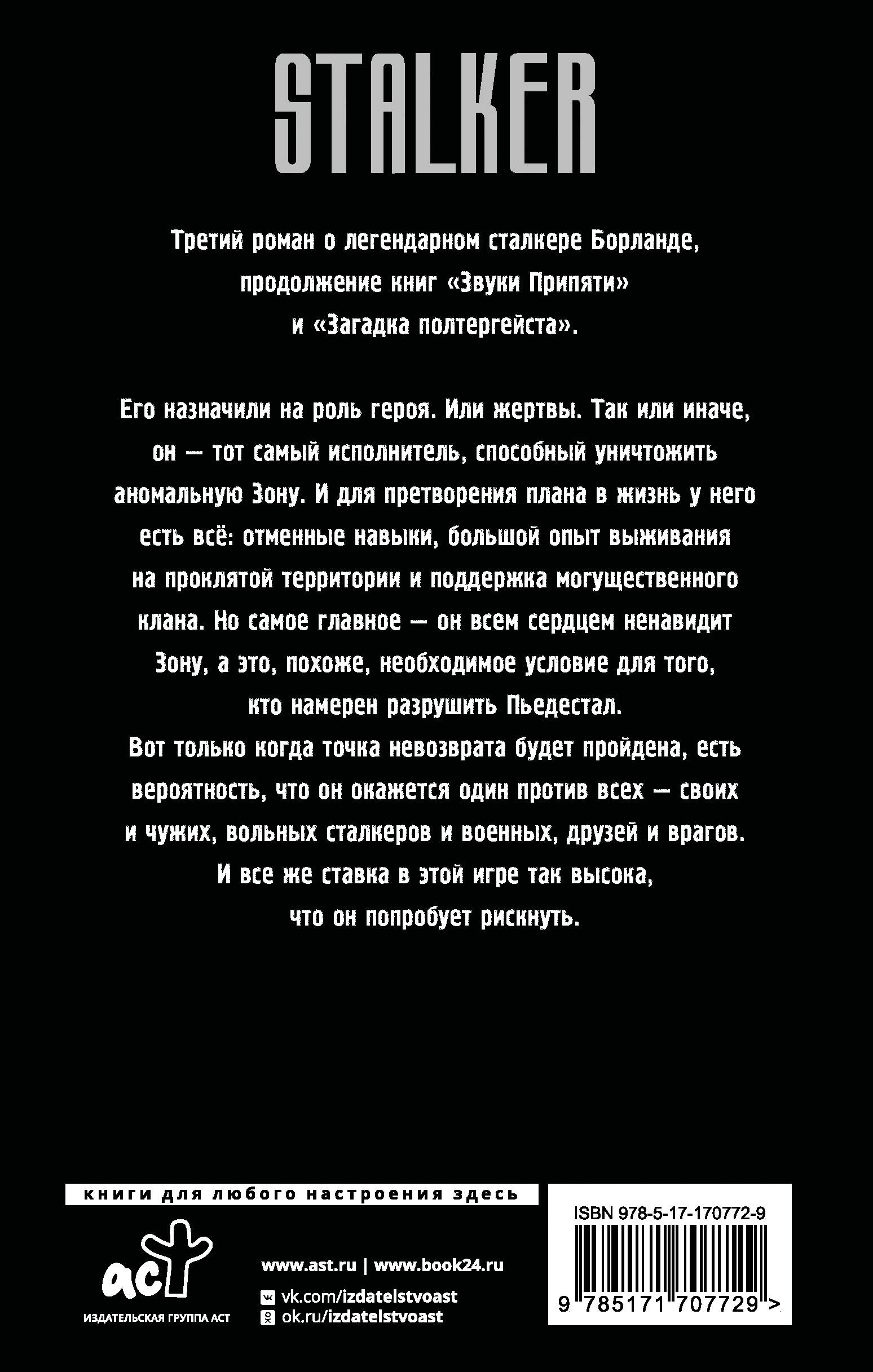 Его назначили на роль героя. Или жертвы. Так или иначе, он — тот самый исполнитель, способный уничтожить аномальную Зону. И для претворения плана в жизнь у него есть всё: отменные навыки, большой опыт выживания на проклятой территории и поддержка могущественного клана. Но самое главное — он всем сердцем ненавидит Зону, а это, похоже, необходимое условие для того, кто намерен разрушить Пьедестал.