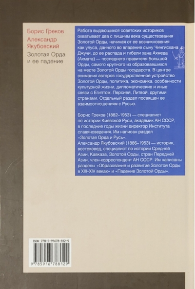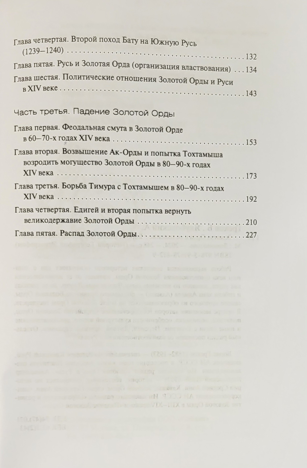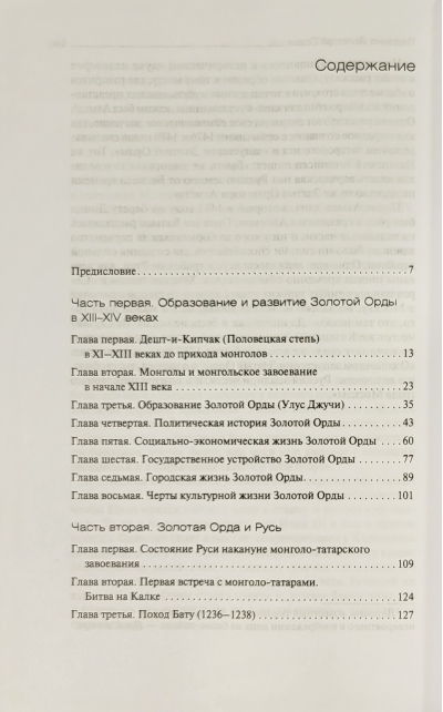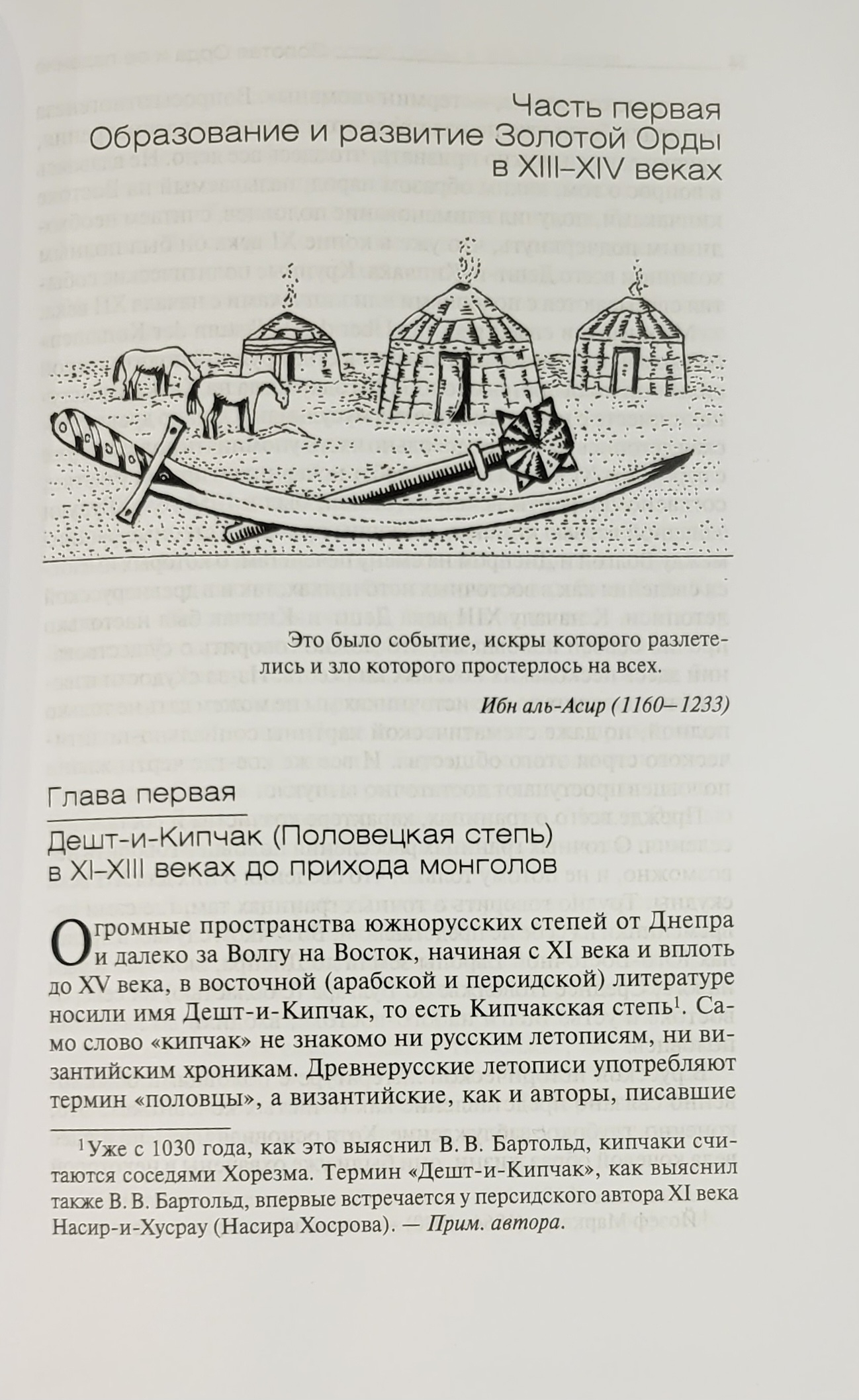 Работа выдающихся советских историков охватывает два с лишним века существования Золотой Орды, начиная от ее возникновения как улуса, данного во владение сыну Чингисхана Джучи, до ее распада и гибели хана Ахмеда (Ахмата) — последнего правителя Большой Орды, самого крупного из образовавшихся на месте Золотой Орды государств. В центре внимания авторов государственное устройство Золотой Орды, политика, экономика, особенности культурной жизни, дипломатические и иные связи с Египтом, Персией, Литвой, другими странами. Отдельный раздел посвящен ее взаимоотношениям с Русью.