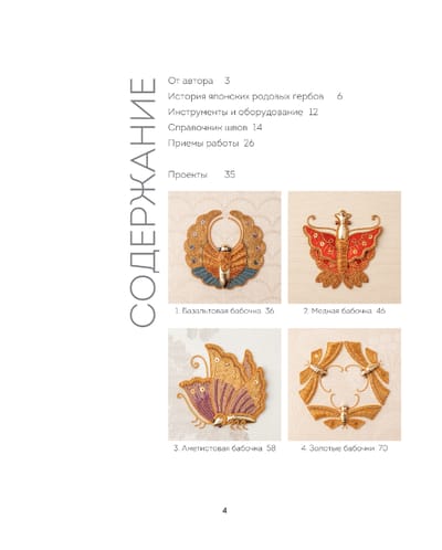 Перед вами настоящие шедевры ручной работы — коллекция из 12 изысканных дизайнов для вышивки в виртуозном сочетании техник рельефного и золотного шитья. В основе композиций — бабочки, японские растения и цветы, которые часто изображались на фамильных гербах японской аристократии.