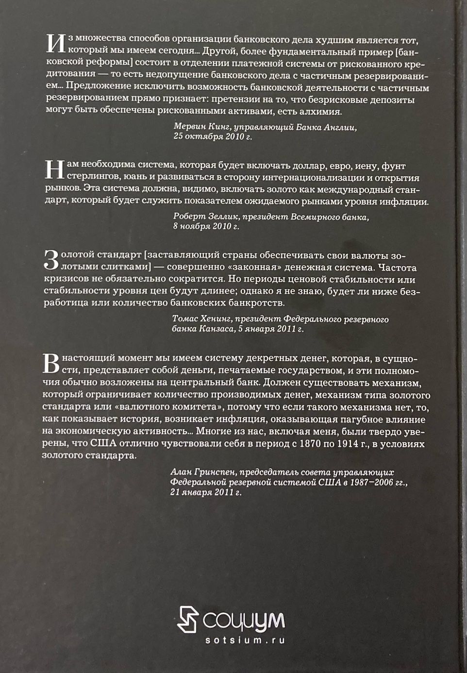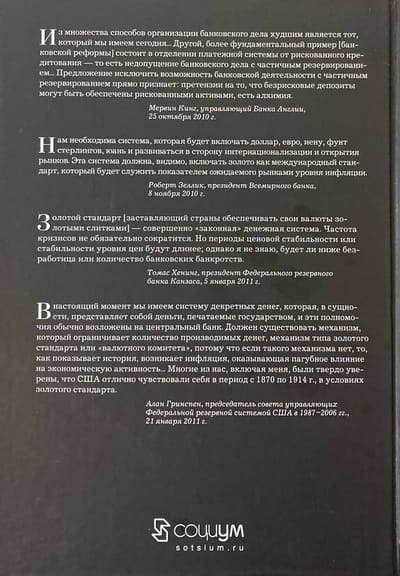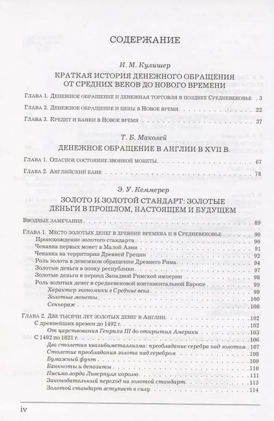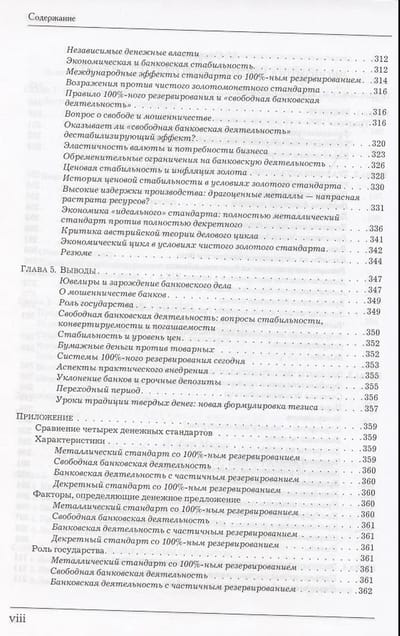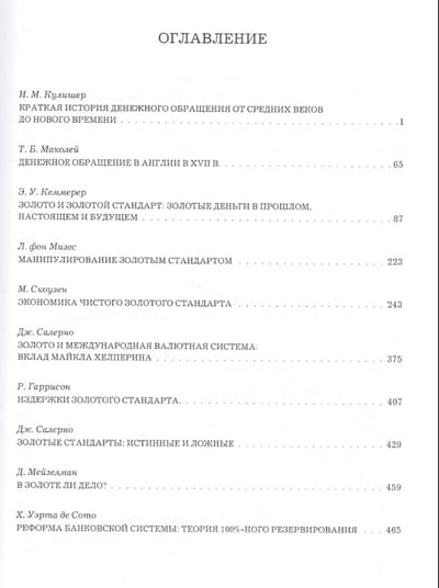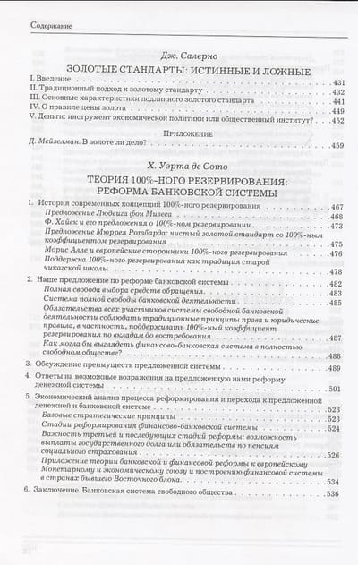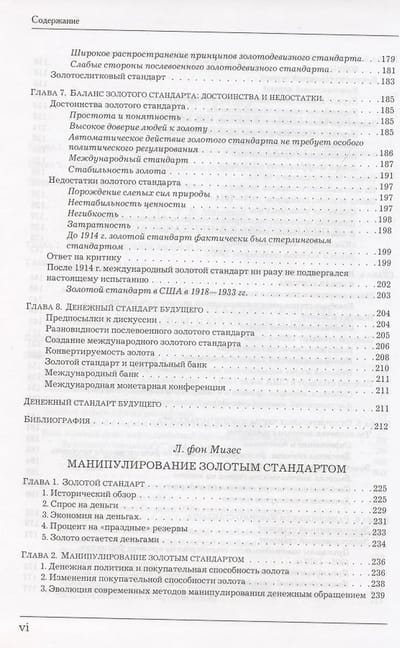 В книге представлены работы «Манипулирование золотым стандартом» Л. фон Мизеса, «Золото и международная валютная система» Дж. Салерно, «Денежное обращение в Англии в XVII веке» Т.Б. Маколея, а также труды других экономистов мирового уровня.