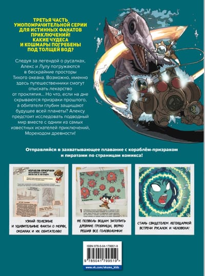 Узнайте об исторических событиях и легендах, связанных с Тихим океаном, познакомьтесь с устройством субмарин и аквалангов, выучите язык дайверов и решите логические задачи. Чтение комиксов ещё никогда не было таким полезным!