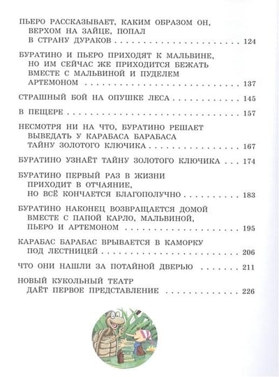 Хотите узнать, как Буратино удалось перехитрить кота Базилио и лису Алису, почему он оказался в тёмном чулане Мальвины, кто такой Карабас Барабас и какую дверь открывает Золотой ключик? Сказочная повесть Алексея Толстого о приключениях деревянного человечка и его друзей-кукол увлечет каждого! Вот уже несколько поколений с интересом читают про озорного и непослушного Буратино и про то, как верная дружба помогает преодолеть любые опасности. В издание вошел полный текст любимой сказки с красочными иллюстрациями Алексея Разуваева, иллюстратора, опытного художника-мультипликатора. А. Разуваеву легко удается создавать яркие типажи, подчеркнуть характеры персонажей, выделить самые значимые сцены и изобразить их со всей динамикой, словно это кадр из мультфильма. Для маленьких читателей книга с такими яркими и выразительными иллюстрациями становится самой любимой и запоминающейся.