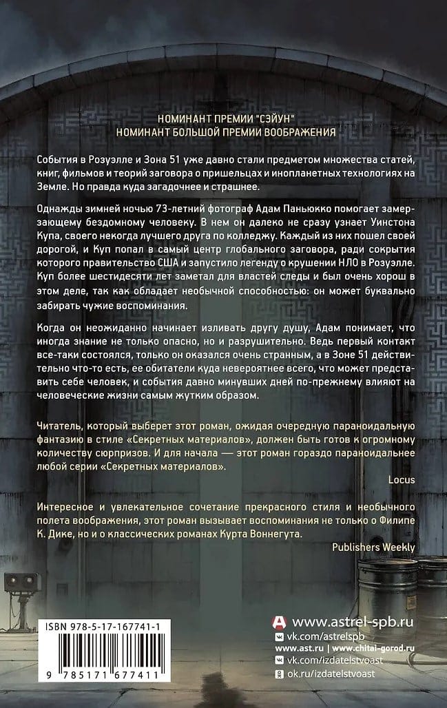 Когда он неожиданно начинает изливать другу душу, Адам понимает, что иногда знание не только опасно, но и разрушительно. Ведь первый контакт все-таки состоялся, только он оказался очень странным, а в Зоне 51 действительно что-то есть, ее обитатели куда невероятнее всего, что может представить себе человек, и события давно минувших дней по-прежнему влияют на человеческие жизни самым жутким образом.