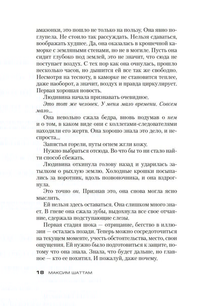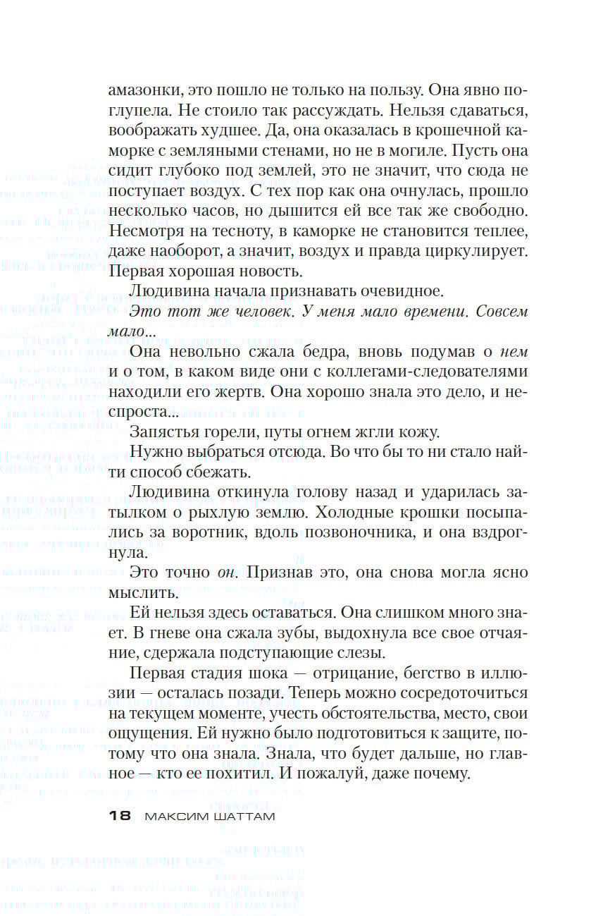 Почему мы боимся смотреть в пропасть? Мы боимся не высоты — мы боимся самих себя. Мы боимся, что, услышав зов пустоты, захотим откликнуться и сделать шаг. И некоторые из нас откликаются... В Париже происходят странные убийства — то ли ритуал, то ли дело рук маньяка. Людивина Ванкер, сотрудница Парижского отдела расследований, вновь сталкивается со злом, с союзом хищников, в чьих преступлениях на сей раз нет и намека на мистику, отчего они не становятся менее инфернальными. Извращенное сознание способно на страшные вещи — но что будет, если поставить его на службу стройной идеологической системе? Террористы уродуют жизни и души, в том числе тех, кого склоняют на свою сторону, но что, если душа уже изуродована? Хищники не знают сострадания, интересуются не живыми людьми, а бесчеловечными абстракциями. Людивина вновь окажется с ними лицом к лицу и узнает, как бороться со злом, если оно неуловимо. К этому роману Максим Шаттам, автор бестселлеров, которые расходятся миллионными тиражами, увлеченный исследователь зла и ужаса, приступал трижды — первые два раза получалось слишком похоже на реальные события. Однако есть истории, которые нельзя не рассказать, и перед вами одна из них.