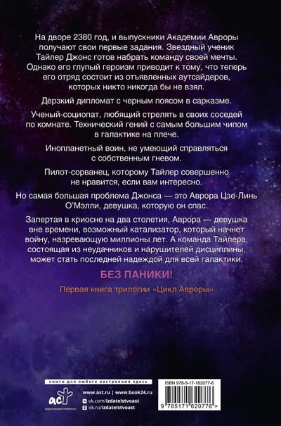 На дворе 2380 год, и выпускники Академии Авроры получают свои первые задания. Звездный ученик Тайлер Джонс готов набрать команду своей мечты. Однако его глупый героизм приводит к тому, что теперь его отряд состоит из отъявленных аутсайдеров, которых никто никогда бы не взял. Дерзкий дипломат с черным поясом в сарказме. Ученый-социопат, любящий стрелять в своих соседей по комнате. Технический гений с самым большим чипом в галактике на плече. Инопланетный воин, не умеющий справляться с собственным гневом. Пилот-сорванец, которому Тайлер совершенно не нравится, если вам интересно. Но самая большая проблема Джонса — это Аврора Цзе-Линь О’Мэлли, девушка, которую он спас. Запертая в криосне на два столетия, Аврора — девушка вне времени, возможный катализатор, который начнет войну, назревающую миллионы лет. А команда Тайлера, состоящая из неудачников и нарушителей дисциплины, может стать последней надеждой для всей галактики.