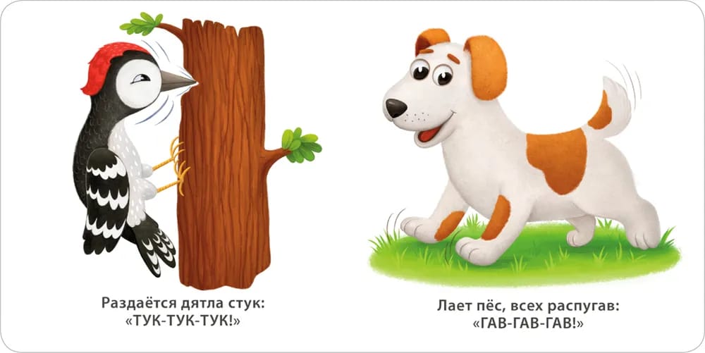 Эта книжка - настоящая находка для любознательного малыша. На каждой ее страничке - яркие картинки и первые звукоподражалки, которые помогут малышу развивать произношение, чтобы избежать логопедических проблем в будущем.